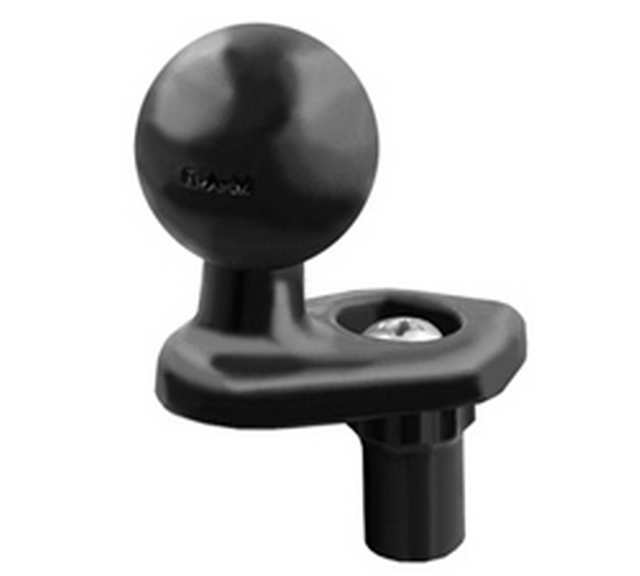 Here is the RAM Fishing Rod Holder Adapter Post. RAM part # RAM-351U. About $13. 1.5" ball. This adapter is a loose fit in the Scotty Mount. If I were to do this over I'd consider using the RAM Wedge Mount below, BUT, I would first verify the RAM Wedge Mount would fit in the Scotty Mount.