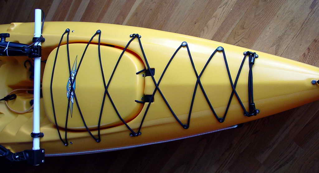Above is a photo of the finshed product. All the bungee buttons and pad eyes were installed with stainless steel screws, fender washers, and nylock nuts. The bungee used was 1/4".