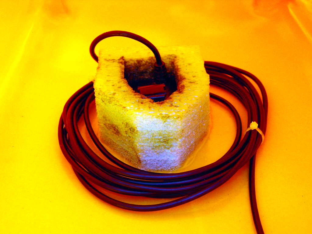 The basic design of this type of transducer mount is a closed-cell foam "doughnut" roughly the shape of the transducer. This "doughnut" is glued to the inside bottom of the hull with a generous, contiguous bead of Marine Goop. The foam doughnut is then filled with fresh or salt water and the transducer press-fit into the center of the foam doughnut until contact is made with the hull. This creates a continuous acoustic connection from the transducer to the water outside the hull.